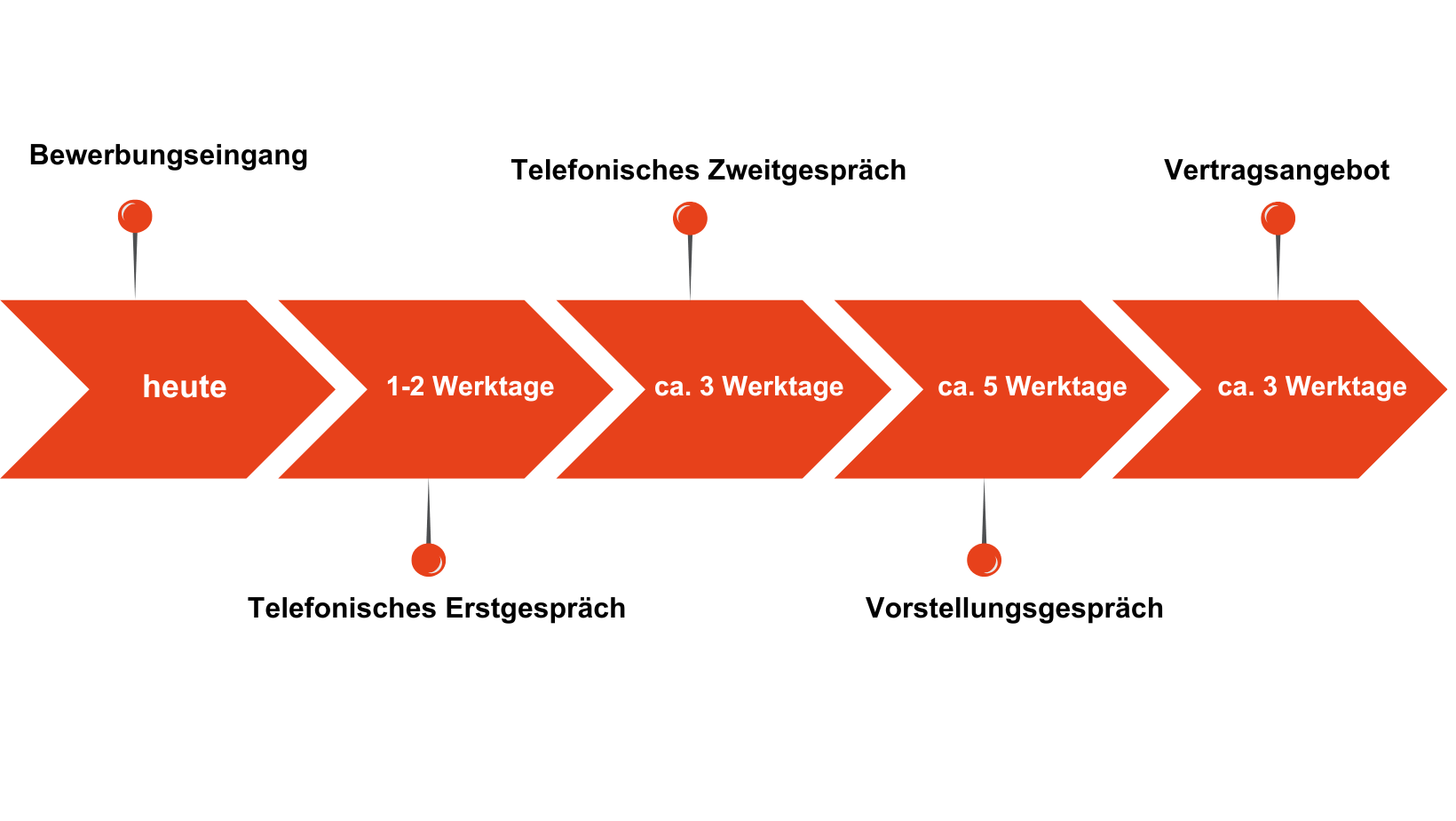 Nachdem wir Deine Bewerbung erhalten haben, werden wir uns innerhalb von 1–2 Arbeitstagen bei Dir melden. Wenn wir gemeinsam entscheiden, dass Du sowohl menschlich als auch fachlich gut in unser Team passt, vereinbaren wir einen Termin für ein persönliches Gespräch.